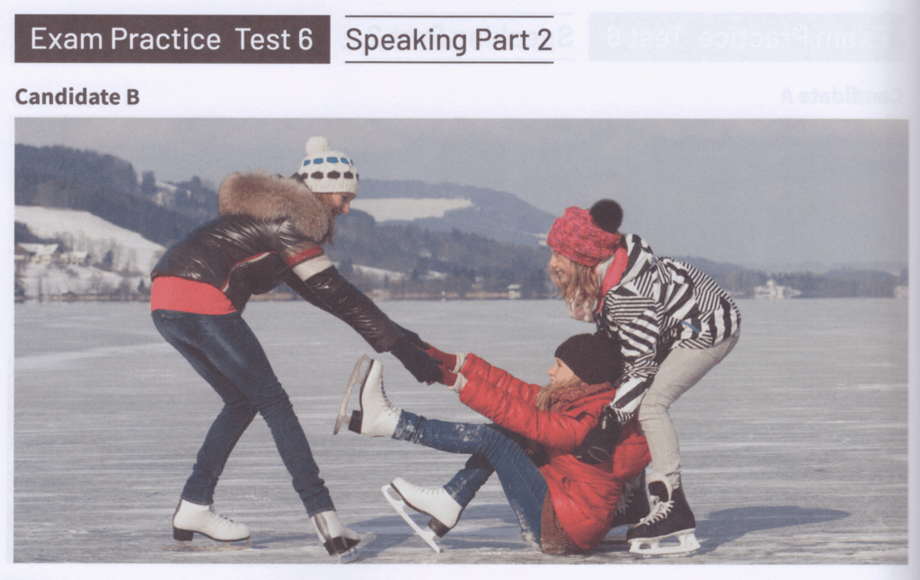 Candidate B, here is your photograph. It shows people doing something together in winter.