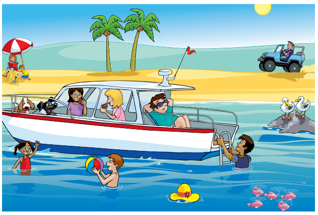 Look at these, this is a beach. The people are on holidays. Here is the car.